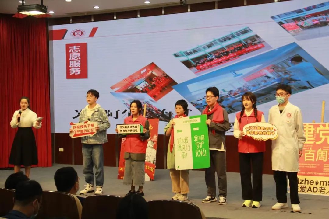 在汇报准备阶段,由金界娱乐城 老师负责组织培训,同学们自制汇报道具,集思广益,排演情景剧增加汇报形式,现场书写“福”字、“党”字,扮演党员夫妇留下珍贵合照,医生、群众、志愿者都手举阿尔兹海默标语,喊出“关爱阿尔兹海默,就是关爱每一个老去的自己”的口号。