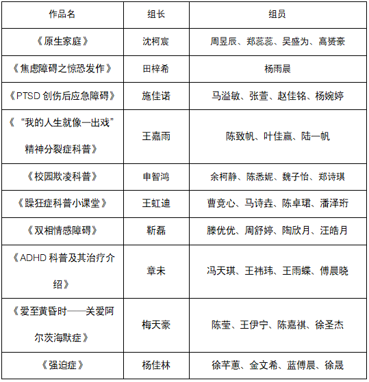经大赛组委会综合评议,沈柯宸、田梓希等十组选手的作品通过复审。恭喜以下十组作品入围第一届“康宁杯”精神心理疾病科普大赛决赛!