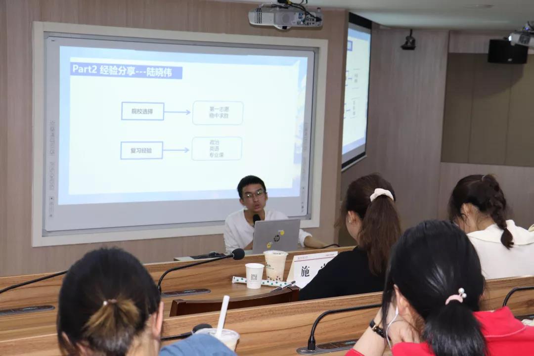 作为金界娱乐城 在读生们的“直系”学姐学长,几位毕业生结合自己的考研经历,从考研方向的确定、考研过程的技巧、复试经验以及考研过程中的心态调整为同学们做了详细讲解。