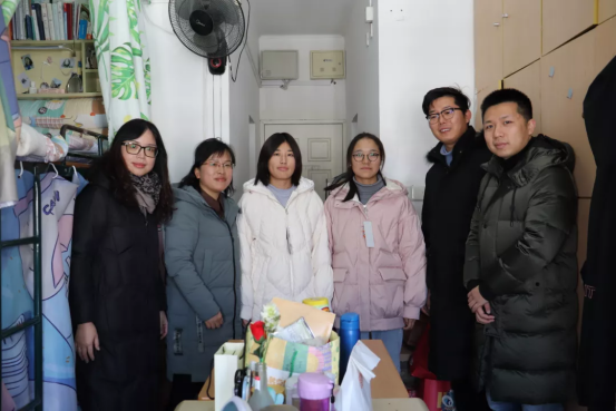 在学生寝室里,涂书记和来自西藏的三位20级精神医学专业的同学进行亲切的交流,“同学,听说你来自西藏,来温州一段时间了,校园生活感受如何?学习怎么样,期末考试复习进度如何?”真挚的关怀和问候让同学倍感温馨。交流过程当中,几位老师亲切地问候同学们御寒物品的准备情况,寝室的通风情况等,仔细查看了学生宿舍设施,叮嘱同学们在寝室生活中一定要注意人身财产安全,养成良好的生活习惯。勉励大家勤奋学习,加强锻炼、快乐生活,注重劳逸结合。同时涂书记向同学们强调在大学的时光里要热爱生活,热爱学习,即使是在寒冷的冬季,也不能蹉跎时光,依然要认真努力学习,不为自己的大学生活留下遗憾。同学们也向老师们积极地反映了自身情况,交谈中欢声笑语,气氛温馨而欢快。
