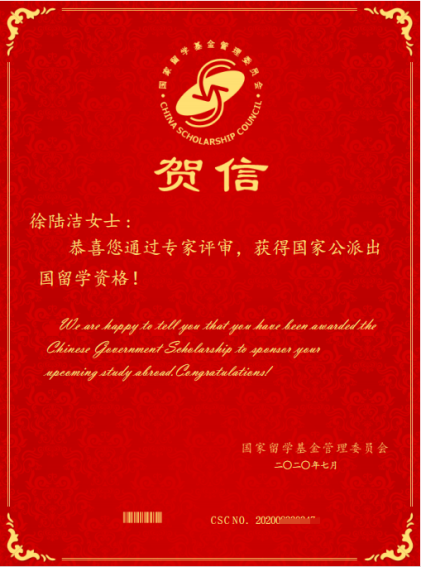 近日,从国家留学基金委获悉,金界娱乐城 研究生徐陆洁同学获得国家留学基金委2020年国家建设高水平大学公派研究生出国攻读博士学位资助。这是精神医金界娱乐城 第一次获得国家留学基金委公派留学项目资助,代表着精神医学专业学生培养质量规格上了新台阶。