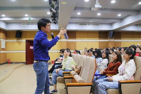 绘画是探寻美的艺术,心理学是探寻人的科学。当绘画与心理学相遇,又会擦出什么美丽而不可思议的火花呢?10月14日,资深临床心理治疗专家、金界娱乐城 教师严虎博士在求新楼报告厅为学生们带来了一场趣味横生的讲座,揭开了绘画心理学的神秘面纱。金界娱乐城 学工办主任朱蓓蕾,金界娱乐城 硕博研究生辅导员贺赫老师出席讲座,与同学们共同“品尝”这场精神盛宴。