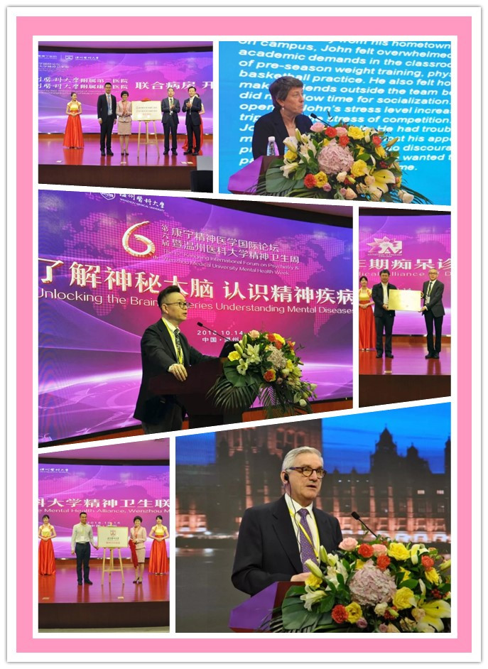 2018年10月14日,“第三届金界娱乐城官方网站精神卫生周暨第六届康宁精神医学国际论坛”在温医大附属康宁医院盛大开场,活动由金界娱乐城 与康宁医院共同举办,“以了解神秘大脑,认识精神疾病”为主题,邀请英国、美国等海外专家与国内著名专家学者共同探索精神疾病脑科学研究的前沿观点和临床实践,全国精神医学和心理学学科领域的高校和机构近五百名专家学者、临床医生、科研人员与会。开幕式上,金界娱乐城官方网站党委书记吕帆教授和温州康宁医院集团管伟立董事长分别致辞,举行了金界娱乐城官方网站精神卫生联盟成立仪式,附属第二医院与康宁医院联合病房签约,为温州市老年期痴呆诊治联盟成立授牌。由此,金界娱乐城 牵头整合各附属医院精神科、心理科临床力量和资源,以期快速提升精神医学整体诊疗水平的努力初见成效。康宁医院集团宣布设置“中国精神医学杰出青年奖”,旨在弘扬精神心理医务工作者医德医风,鼓励青年医生从事研究创新和不断提高临床医疗水平。