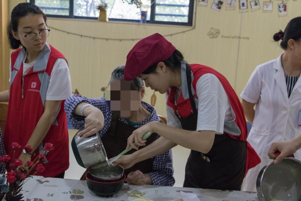 最热闹的是掷飞镖区域,志愿者们先为老人们做示范,老人们学会玩法后,不再那么害羞,玩的不亦乐乎,既锻炼了身体,也放松了原本紧张的心情;烘焙区的老人们需要自己动手做蛋挞,志愿者们握着老人们的手教他们制作蛋液,亲密的互动交流让老人们体会到了陪伴的温暖。让人印象深刻的是拼图区,老人们格外认真,在志愿者手把手的指导下,共同完成了一幅幅美丽的图案,对他们而言,拼凑的或许不仅仅是一张照片,更是一个故事,一段回忆,一缕温情,即使他们已经不再记得。