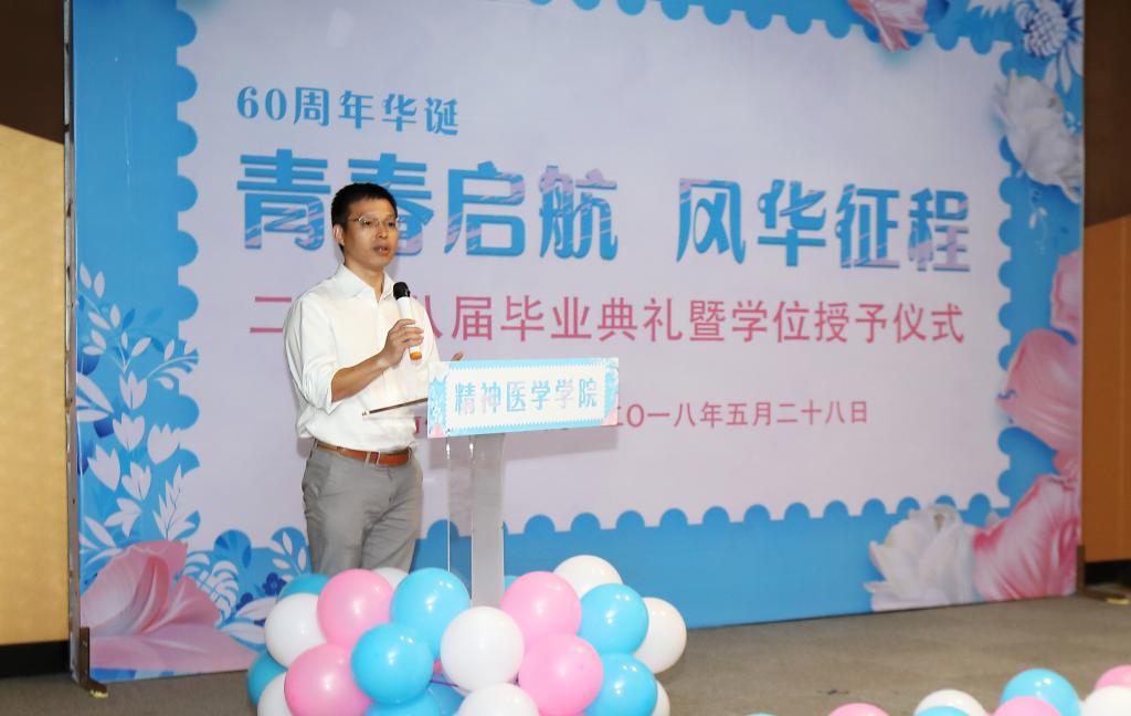 周强老师作为教师代表发言,以实验为比喻,激励学生们在未来的日子里,做自己实验的主试,勤奋和努力始终是自变量,坚持不断奋斗。